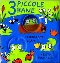 Le tre ranocchiette si possono spostare da una taschina all'altra del libro e di pagina in pagina il bimbo può costruite la storia oppure far fare loro un bel tuffo nella schiuma del suo bagnetto!